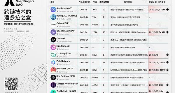 跨链桥一直是响指关注的赛道,在之前的周报中曾介绍过跨链桥的类型划分,主要分为特定资产跨链、跨链交易协议、特定链之间的桥。下图梳理了市面上主流跨链桥及相关指标。