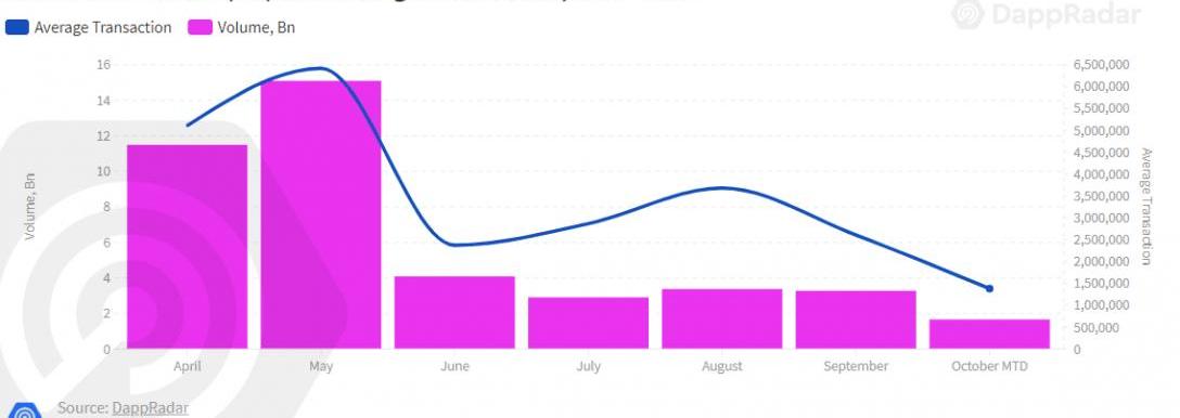 10月份,只有17%的DeFi用户与NFTDapp进行了交互,这表明DeFiDapp用户仅对这一类别非常感兴趣。?
