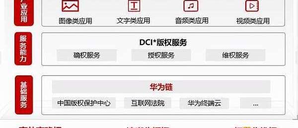 华为云区块链支持华为终端,联合监管部门推出DCI数字版权保护能力,帮助数字内容创作者在作品产生的源头就可以存证确权,实现作品生产后第一时间进行版权保护,后续还可以实现作品的在线授权和维权,保障原创合法权益。