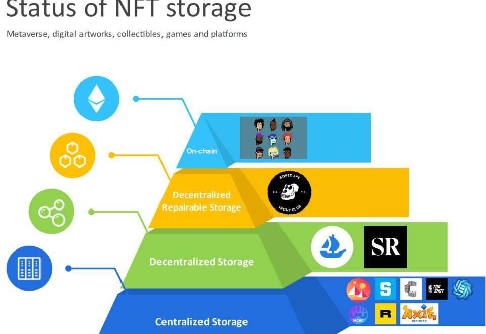 中心化可验证的链下存储方式是对中心化方式的优化,但仍存在多方面风险,不能很好的解决NFT乃至元宇宙对确权数据本体的高可靠性存储需求。