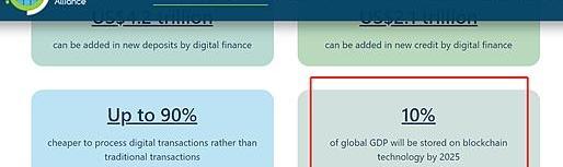 国际上,不少机构组织一直在积极推动将区块链技术应用在可持续金融领域,GreenDigitalFinanceAlliance预测到2025年全球10%的GDP都会储存在区块链中。