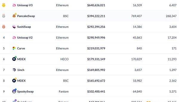 过去24小时去中心化交易所的交易量数据来源:Debank