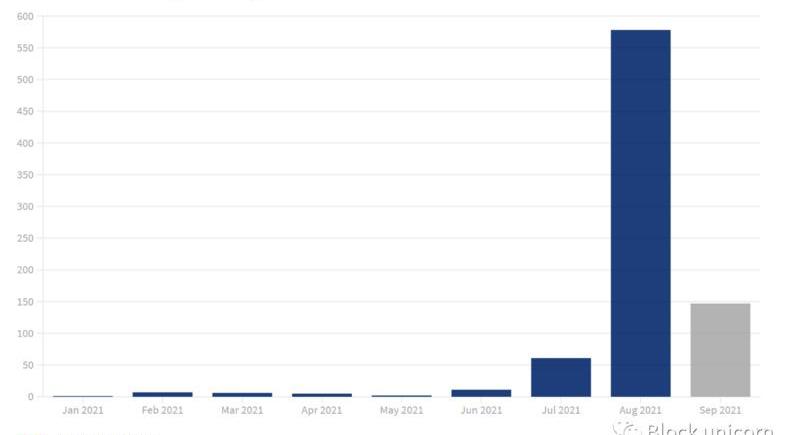 2021年,NFT市场的交易量已超过10B美元。在五到六个月的时间里,启动了无数NFT项目,推动该领域达到创纪录的8月。在那个月,NFT产生了超过$5.2B的交易,吸引了超过314万的交易者。交易量较7月份增长311%,较3月份增长680%。?