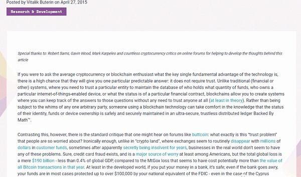 《愿景,第二部分:信任问题》详见:https://blog.ethereum.org/2015/04/27/visions-part-2-the-problem-of-trust/