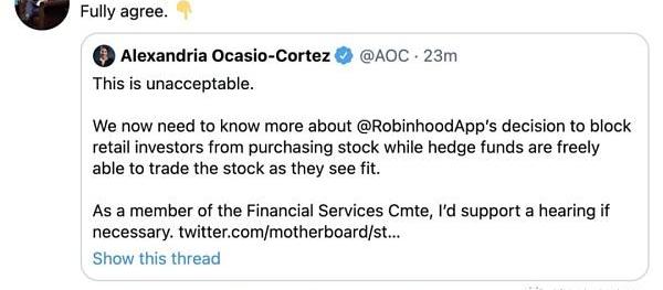 最近Robinhood停止GameStop散户交易的决定是去信任系统让用户失望的一个例子。这一事件让两党对立的政客们达成了一致:Robinhood冤枉了它的使用者。详见:https://twitter.com/AOC/status/1354830697459032066