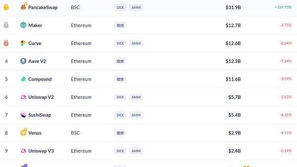 DeFi项目锁定资产前十排名及锁仓量,数据来源:Debank