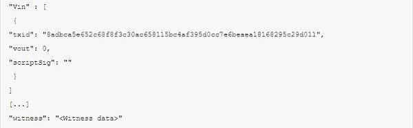 但是,在花费一个隔离见证输出的时候,交易的scriptSig将为空,而所有的签名都会放到一个专门的地方: