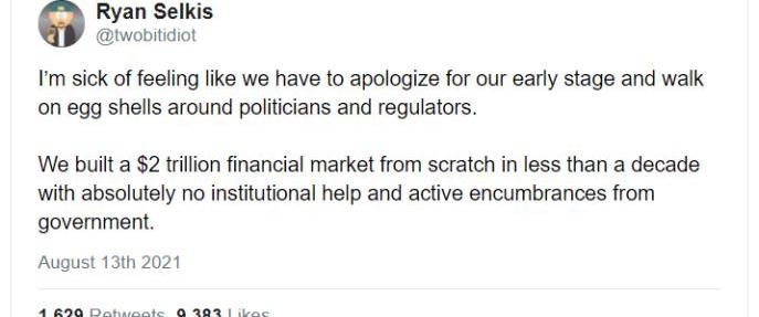 对要为加密货币中发生的一切道歉,感觉很无奈。