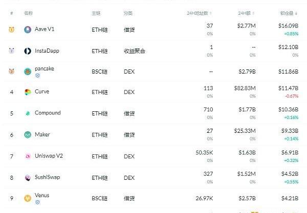 锁仓量排名前十的借贷平台排名来源:DeFibox
