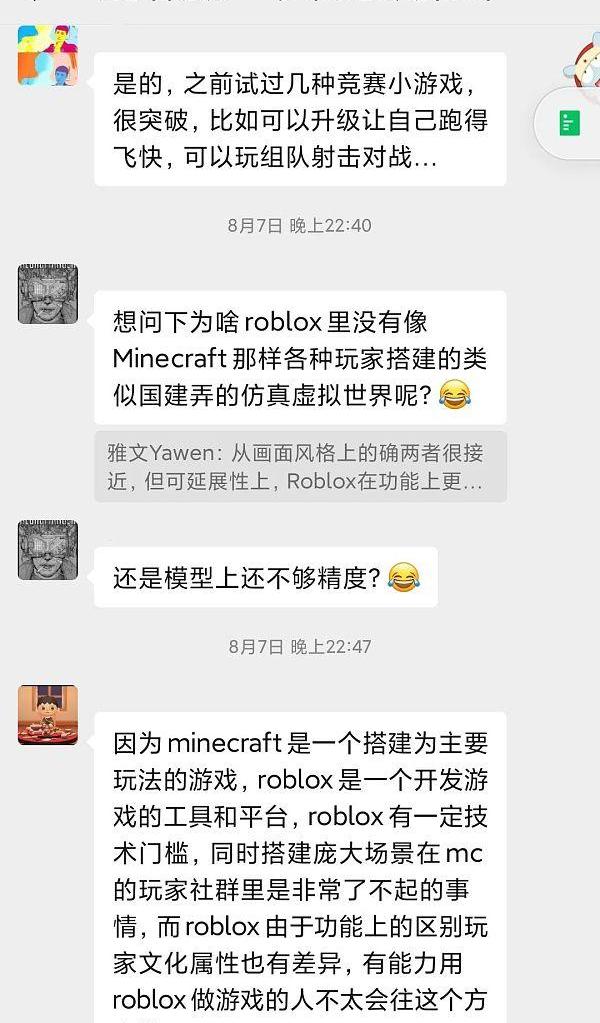 我们这次也邀请到了罗布乐思中国区大使“雅文”作为访谈嘉宾,和他聊了聊关于Roblox的一些规划。