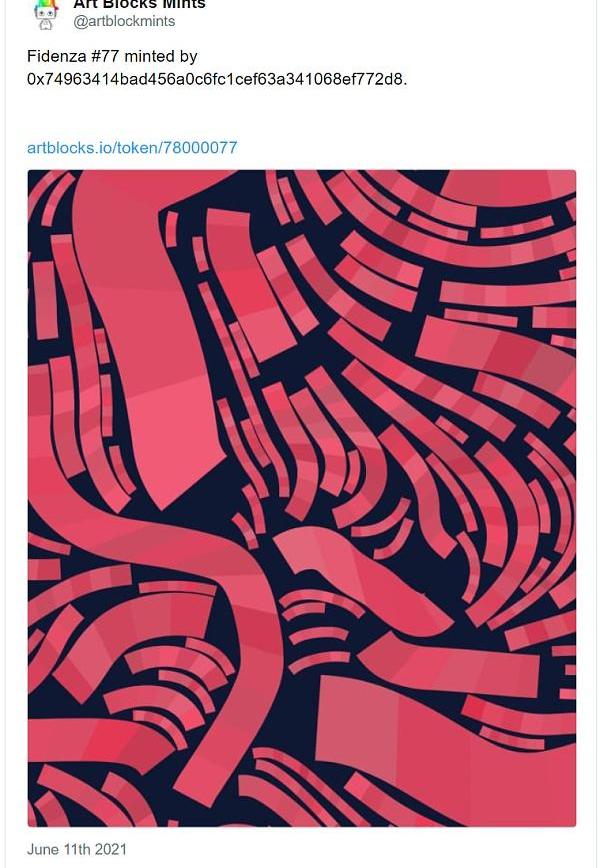 TylerHobbs的Fidenza#77以50ETH的价格售出!