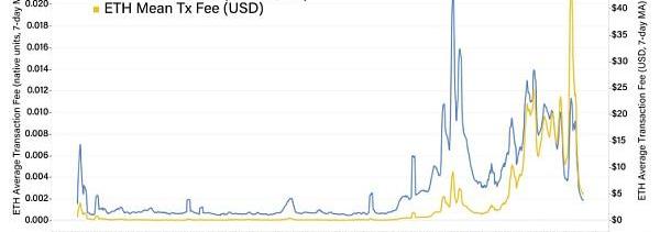 以太坊矿工从费用中获得更多收入,来源:CoinMetrics