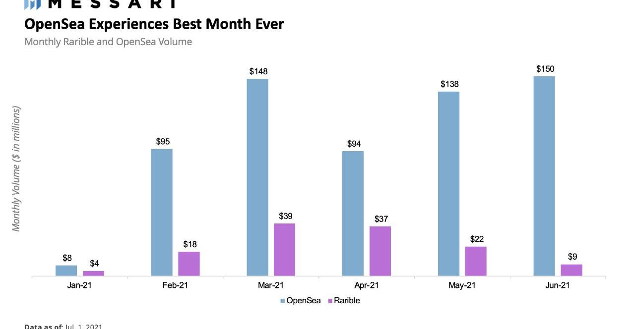 在NFT成交量方面,OpenSea在6月份创下了有史以来最好的记录。相对于OpenSea,Rarible的糟糕表现很大程度归因于没有提供一些火爆的NFT类别,如NFT头像、运动收藏品和虚拟世界等。