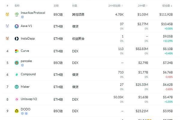 DeFi项目锁定资产前十排名及锁仓量,数据来源:Debank