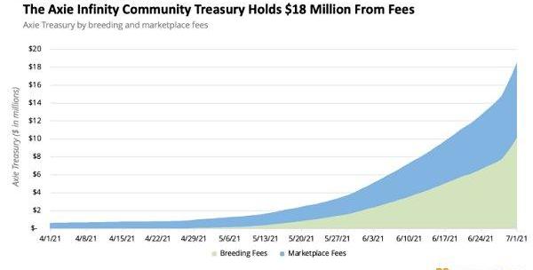 Axie金库现在的价值已经超过2100万美元,其中85%是在过去一个季度通过繁殖和市场费用积累的。AxieInfinity与其他加密货币游戏已不可相提并论,而且它将继续上升。AxieInfinity下一个重要的里程碑将是在第三季度推出AXS质押,并将在第四季度推出其虚拟世界Lunacia的alpha版本。