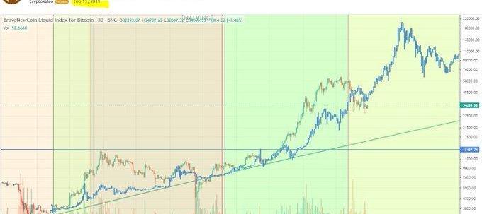 KALEO在其推特上更新了比特币减半的价格分析线程,他认为目前我们处于比特币奖励减半的第二季度,此时的市场大局与2019年2月时的预测相符。