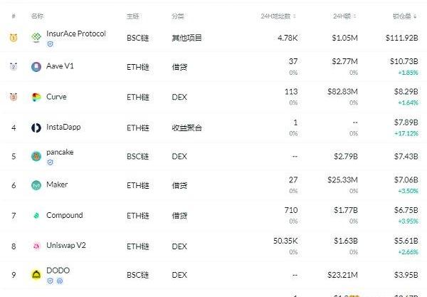 DeFi项目锁定资产前十排名及锁仓量,数据来源:Debank