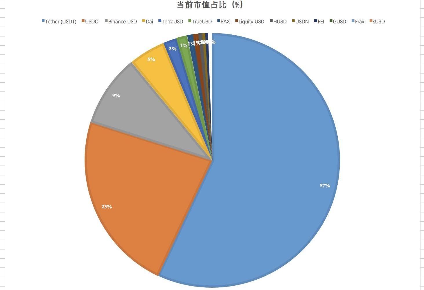 注:本文依据的是市场流通市值指标来衡量稳定币的规模变化,涉及到的稳定币项目有Tether(USDT)、USDC、BinanceUSD、Dai、TerraUSD、TrueUSD、PAX、LiquityUSD、HUSD、USDN、FEI、GUSD、Frax以及sUSD,统计数据均来自coingecko