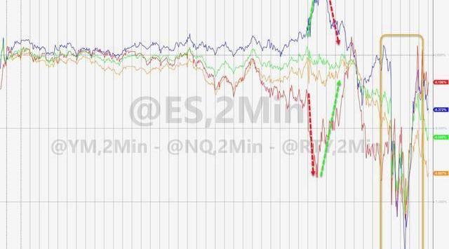 美联储决议公布后,三大指数集体刷新日低,道指一度跌超380点,标普跌幅曾达1%,纳指一度跌1.2%。鲍威尔发布会期间,纳指曾短线转涨,道指跌幅一度收窄到160点以内,标普抹平多数跌幅。