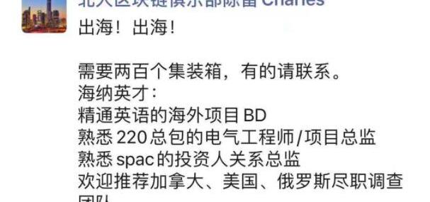 由于矿场出海已成趋势,也带动集装箱资源紧俏。币信矿业CEO陈雷,近期就在朋友圈发文求购200个集装箱。