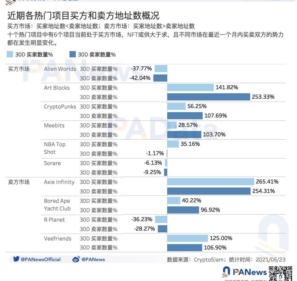 ArtBlock和BoredApe近期交易额涨幅超1000%,6个项目处于买方市场,或供过于求