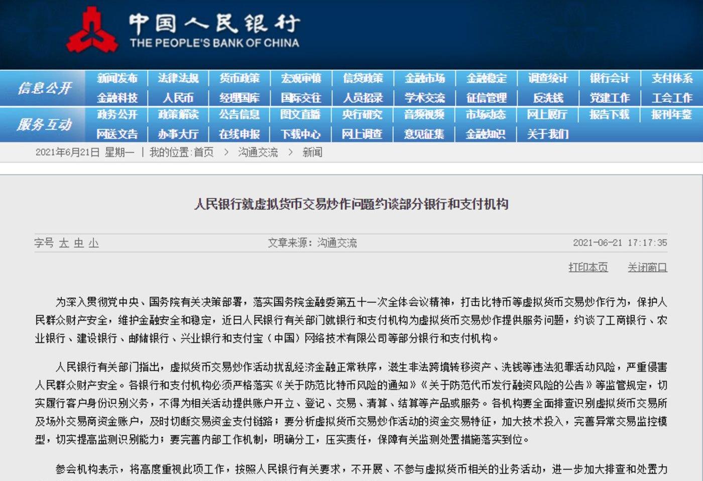 虚拟货币监管越来越严。据央行官网6月21日消息,近日人民银行有关部门就银行和支付机构为虚拟货币交易炒作提供服务问题,约谈了工商银行、农业银行、建设银行、邮储银行、兴业银行和支付宝等部分银行和支付机构。