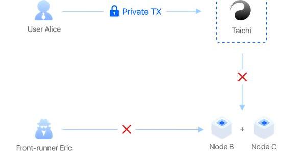 TaiChiNetwork是SparkPool运营的私人交易服务。用户交易仅对Sparkpool可见,不会广播到其他以太坊节点,从而阻止MEV机器人对订单采取行动。由于SparkPool可以查看交易,因此它仍然容易受到SparkPool运行的MEV机器人的攻击。