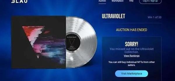 2月底,知名DJ、制作人3LAU发行了33张限量版NFT专辑《Ultraviolet》,拍卖总价高达1160万美元;