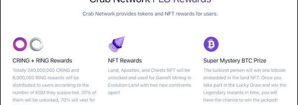 Crab采用众贷方式竞拍插槽,参与者将其KSM锁在Crowdloan中48周,并将获得CRING、RING、NFT、BTC作为奖励。