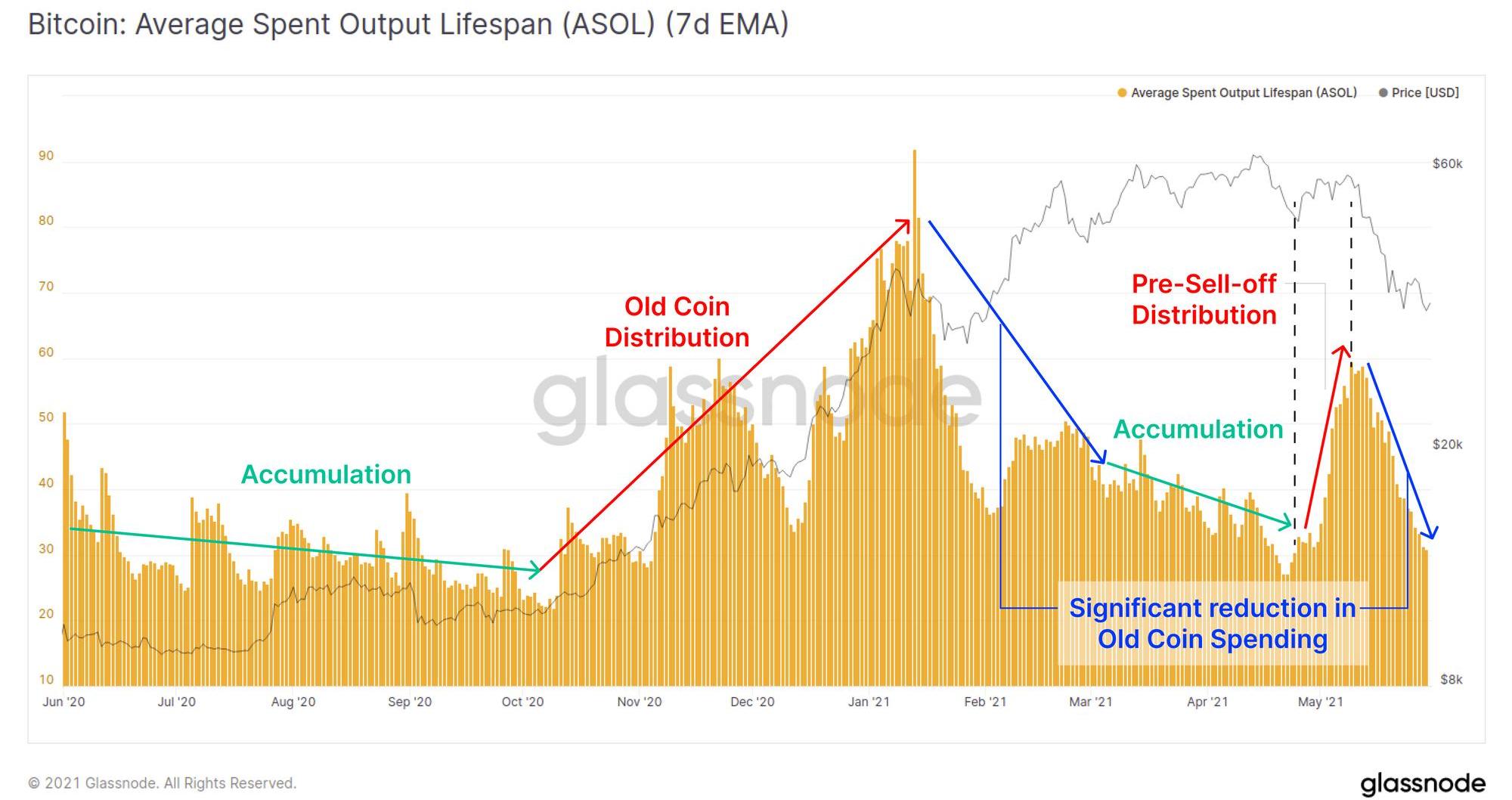 低ASOL值表示旧币仍处于“HODL”状态,未被移动。