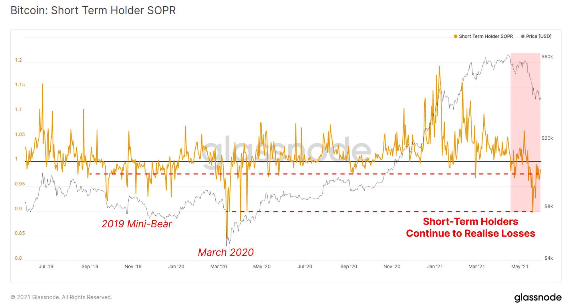 另一方面,在之前的市场崩盘期间,短期持币者的支出增加了5倍以上,最大支出发生在当前的市场低点附近。