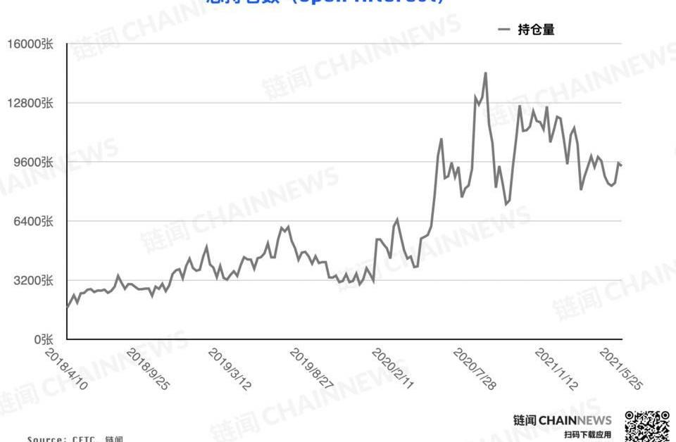 总持仓数量在最新一期数据中自9522张回落至9376张,极端跳水的背景下市场总体持仓量有所回落,不过总体持仓量仍然保持在近一个月的相对高位水平,市场的参与热度仍然高企。