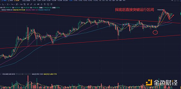 19000美元已经正式被攻破,昨晚最高时一度到达19400美元上方,以至于很多人一夜没睡,认为行情会在半夜突破20000美元想见证历史,可惜后面行情还是没有如大家所愿,不过能在19000上方维持这么久已经对市场情绪起到很强的刺激性作用,有意思的是昨天其他主流币本来上涨情绪高涨,但晚间比特币上涨不但没有起到促进作用,反而在一定程度上逼停了其他币种的上涨,坐实了“大饼吸血”的事实。按照这样的气势,日内新高依然值得期待,甚至可以期待一下20000美元,特别是到了晚上。