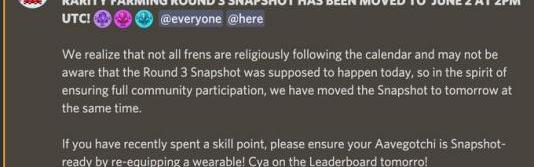 Aavegotchi稀有度挖矿第一季第三轮快照已于UTC时间6月2日14:00完成。