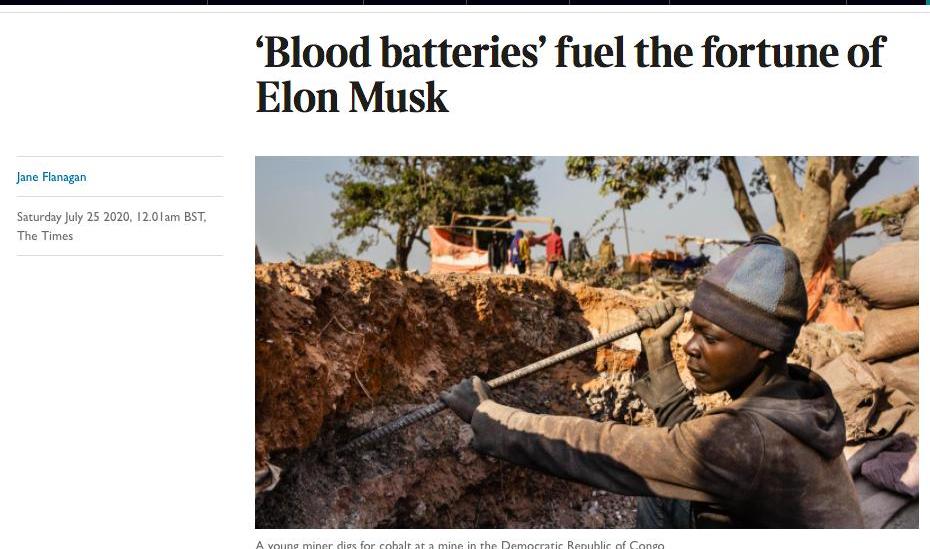 2.特斯拉海外锂矿破坏环境、剥削童工。其援引《泰晤士报》去年一篇文章,称特斯拉在刚果共和国的工厂为“血汗工厂”。