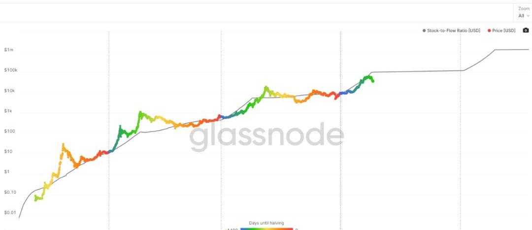比特币价格走势和S2F曲线基本吻合,来源:Glassnode