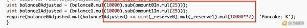 管理员在交换前后比较池中两个代币余额的乘积时使用了不一致的乘数,这使得攻击者可以仅用1Wei就从池中换出大量代币。
