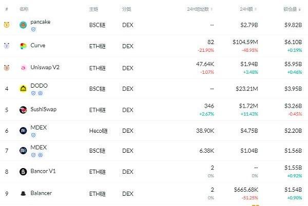 交易量排名前十的DEX排名来源:DeFibox