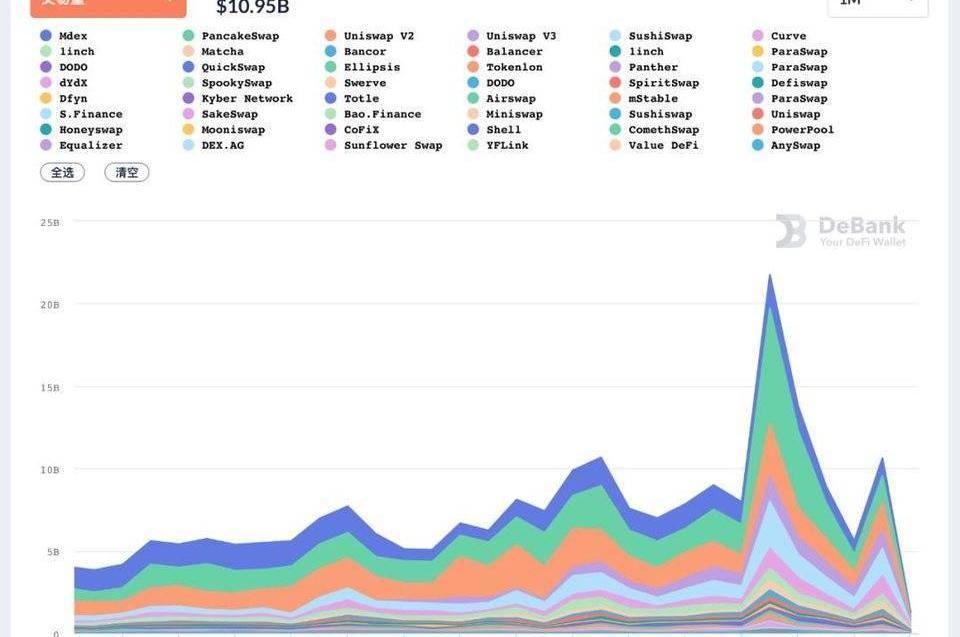 在5月19日已经出现的市场大跌中,所有DEX的累计交易量为日交易量的历史最高,接近220亿美元。