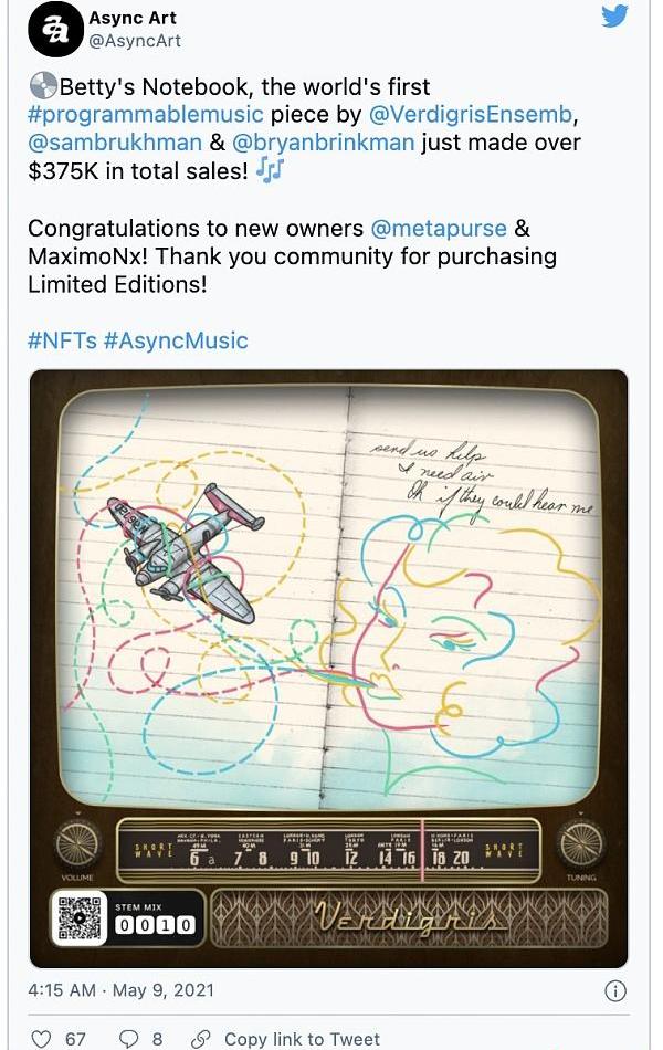 收藏者可以对其拥有的NFT进行再创作:AsyncArt是一个NFT铸币平台,其创造了可编程的NFT和音乐。只要拥有一段NFT音乐或NFT音乐的一部分,收藏者就可以对它进行二次创作,使其成为自己独一无二的音乐。