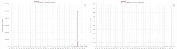 数字资产市场近90日成交量变动,来源:tokeninsight.comDeribit交易所比特币期权与期货实时清算量,截至5月14日18:00,来源:gvol.io