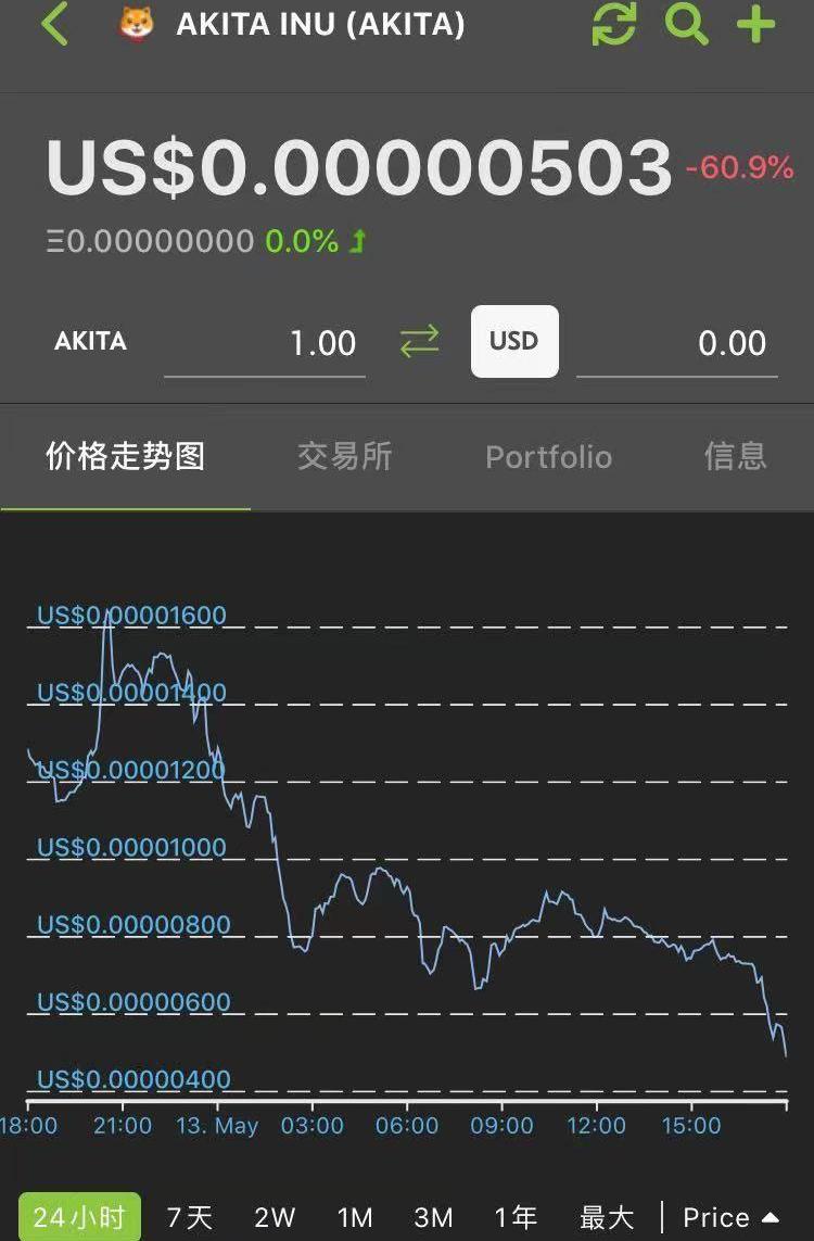 5月13日凌晨,V神抛售SHIB官方空投的220亿枚SHIB。受大规模抛售影响,SHIB价格暴跌超30%,市值缩水60%。此外,V神还抛售HUSKY、Dogelon(ELON)、AKITA等动物代币,这些代币价格均出现不同程度的下滑。同期,其他动物代币悉数下跌。