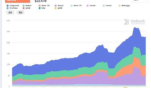 DeFi借贷平台借款总量数据来源:Debank