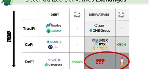 我们已经看到了像AAVE或COMPOUND等借贷协议开始吞噬传统和中心化金融中借贷市场。同样的事情发生在衍生品市场只是时间问题。
