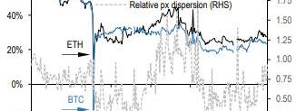 然而,高频基础定价揭示出比特币和以太坊两个加密货币的市场表现存在显着差异,也突显处于一些有趣的潜在区别。
