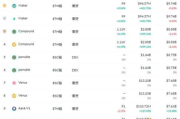 锁仓量排名前十的借贷平台排名来源:DeFibox