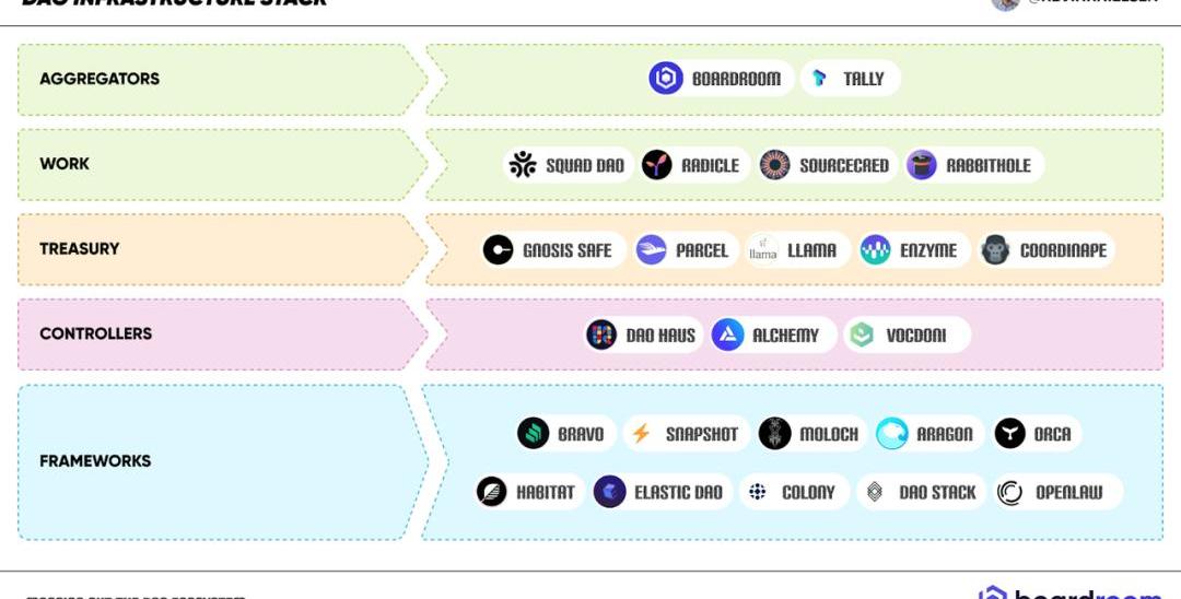 这些项目类别不太可能经受住时间的考验。在未来的几年里,DAO工具会也将发生翻天覆地的变化。尽管如此,在Boardroom,我们对DAO的迅猛发展和全球贡献者和利益相关者的实验感到激动。虽然上述分类可能不是很准确,但是它可以帮助那些还不熟悉DAO这一新型实体结构的新手更好地理解相关应用场景。