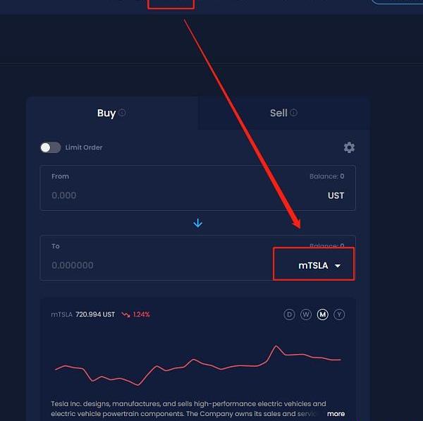 导航栏选中,选择需要购买的美股代币,选择购买数量,就可以直接用UST进行美股代币交易。