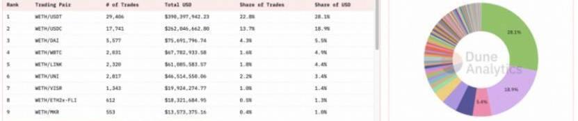 上图:UniswapV2上最受欢迎的交易对——所有都是ETH交易对