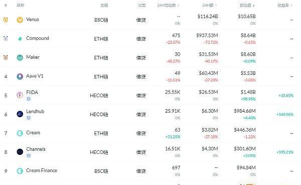 锁仓量排名前十的借贷平台排名来源:DeFibox